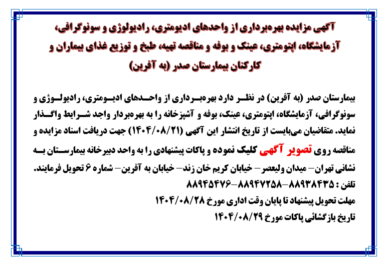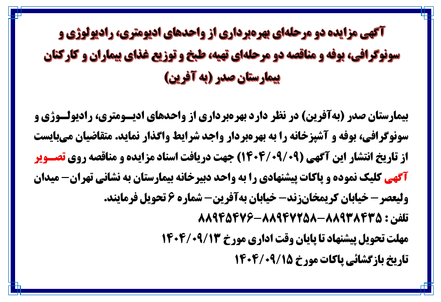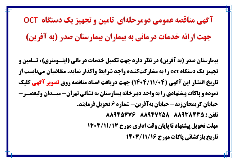 بیمارستان صدر ( به آفرین ) یک بیمارستان جنرال با گرایش چشم است . این بیمارستان با مشارکت سازمان تامین اجتماعی و بخش خصوصی اداره می شود و توانسته همواره یکی از بیمارستانهاي موفق در ارائه خدمات تشخیصی ، درمانی و مراقبتی در خدمت بیماران بویژه بیمارن چشم باشد